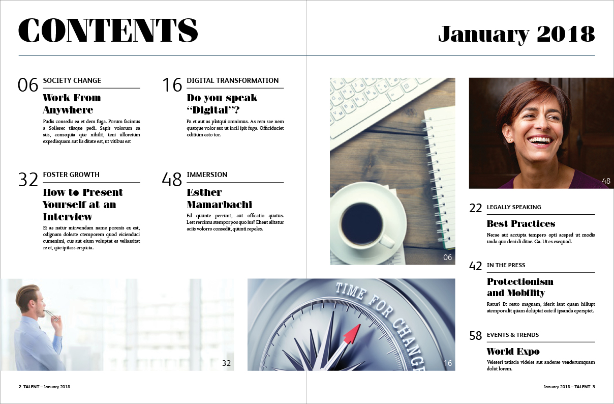 Talent Magazine, a publication geared towards ambitious and career savvy professionals needed an identity that would attract the middle to high-end market. We created a magazine layout that is bold but not loud.