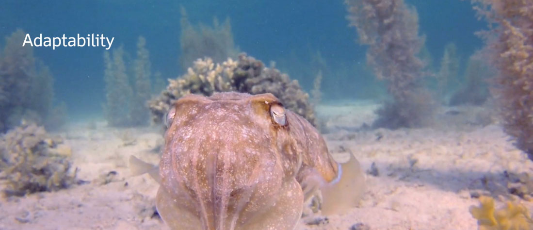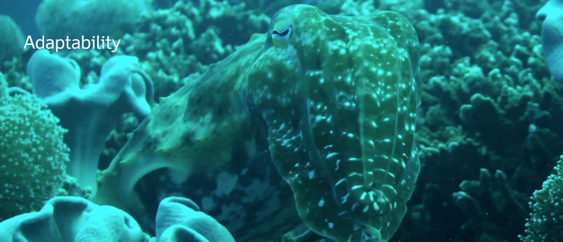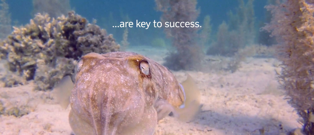 This video ad explores the importance of adaptability in the game of survival. We are presented with the advantage of having a different strategy and warned of the illusion of safety arising from conformity. We follow a cuttlefish exploring the ocean and witness its amazing transformations. We are also presented with the main services provided by TASK America. The format chosen was 2.39 custom widescreen, giving the video a more cinematic feel.