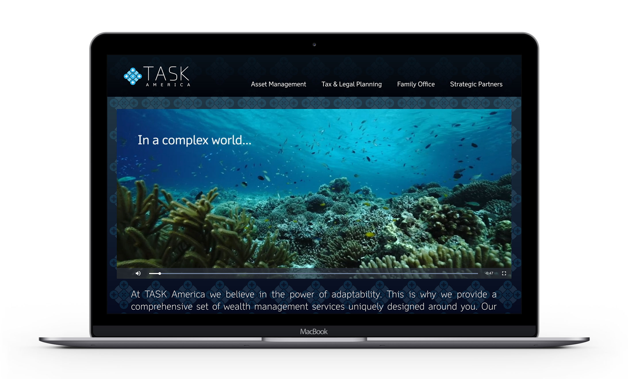For their newly setup American outfit, TASK Wealth management needed to develop a brand that would enable them to be different from other wealth management firms. We created a unique visual identity and developed a brand philosophy that we communicated through a video ad. We also developed the firm's website and stationery.