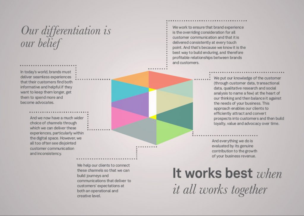 The light cube was created as a symbol for quad play, supporting the key message: "It works best when it all works together".